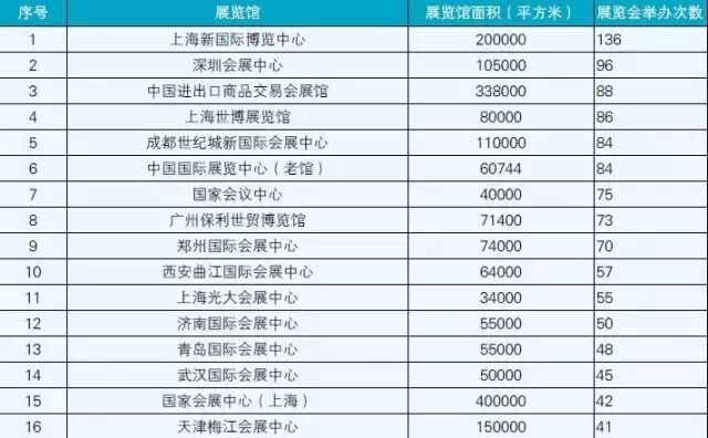 据统计,2016年全国室内可租用面积大于等于5000平方米、且举办2个以上经贸类展览会的展览馆共有156个,比2015年增加20个,室内可租用总面积约823 万平方米,较2015年增加176万平方米。其中,室内可租用面积10万平方米以上的展馆共22个,较2015年增加9个。展览馆市场的持续升温为中国展览业进一步发展提供了硬件支持。